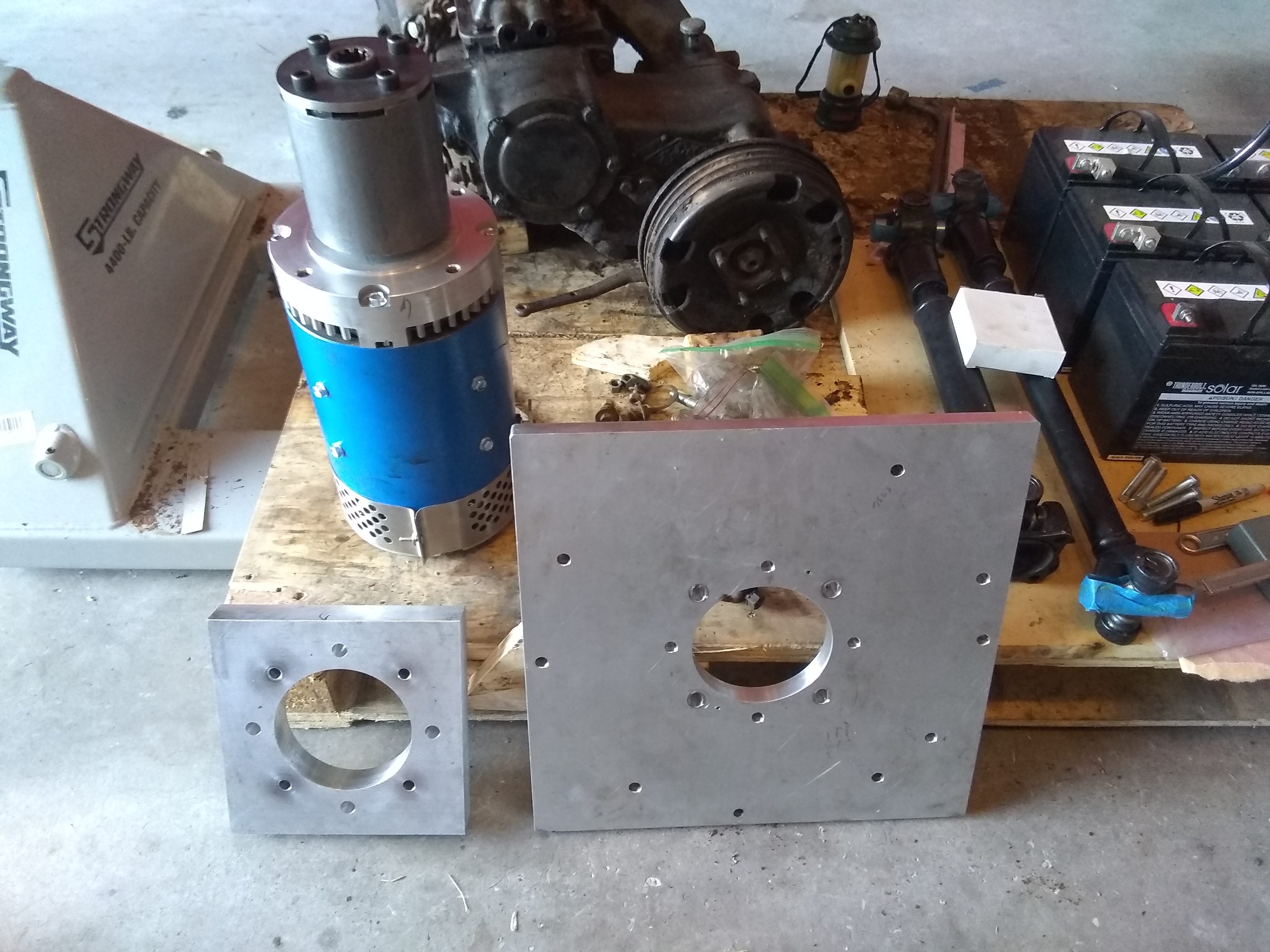 For an electric vehicle conversion from a gasoline powered vehicle you need a car with a standard transmission. You will keep the transmission in place and create an adaptor plate, spacer, and hub to join the output shaft from the electric motor to the transmission. I went for a clutchless design that utilized the hub of the existing clutch disc (it has splines that match the transmission shaft). A local machine shop created the parts and I provided the measurements and drawings.